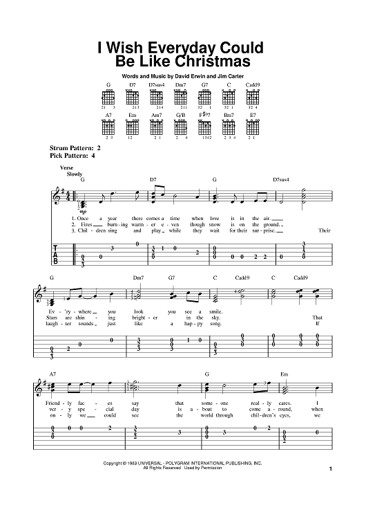 Digital Sheet Music for I Wish Everyday Could Be Like Christmas by Brook Benton, Jim Carter, David Erwin scored for Easy Guitar Tab; id:375034