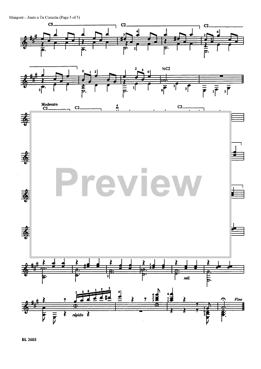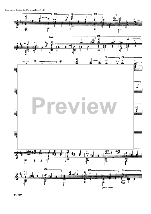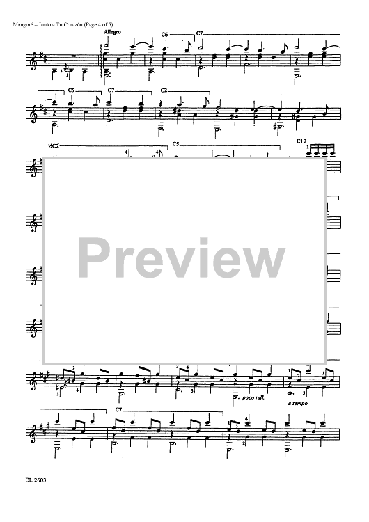 "Junto a Tu Corazón-vals (Close to Your Heart Waltz)" Sheet Music by Agustin Barrios Mangore