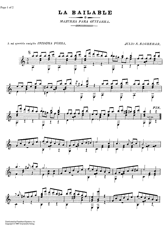Digital Sheet Music for La Bailable by Julio Sagreras scored for Guitar; id:327148