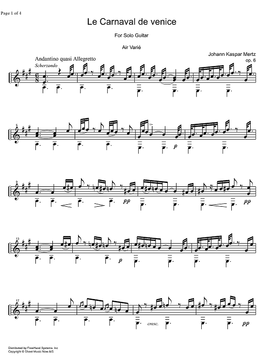 Digital Sheet Music for La Carnaval de Venice by Johann Kaspar Mertz scored for Guitar; id:322347