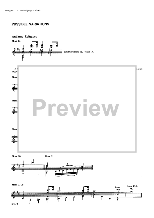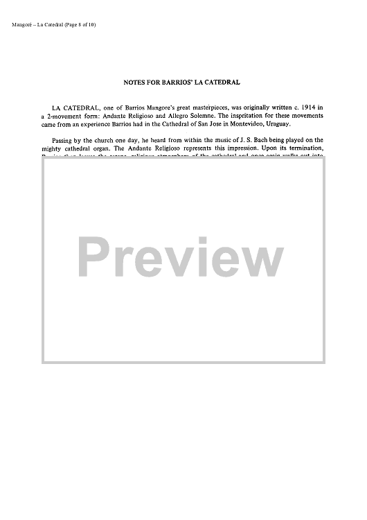 "La Catedral (The Cathedral)" Sheet Music by Agustin Barrios Mangore