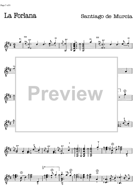 Digital Sheet Music for La Forlana by Santiago de Murcia scored for Guitar; id:330028