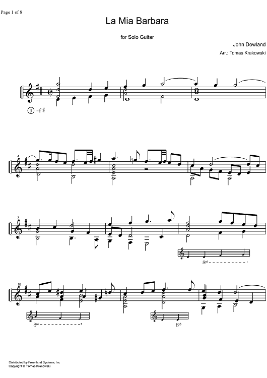 Digital Sheet Music for La Mia Barbara by , John Dowland, Tomas Krakowski scored for Guitar; id:327033