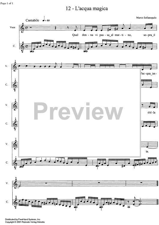 Digital Sheet Music for L'acqua magica by Marco Sofianopulo scored for Soprano or Tenor/Guitar; id:336255