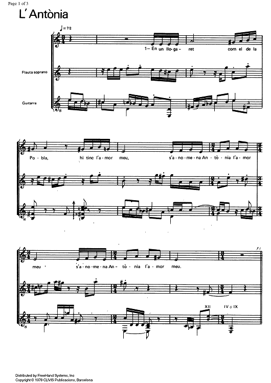 Digital Sheet Music for L'Antonia by , Bernat Rövenstrunk scored for Vocal/Recorder/Guitar; id:349119