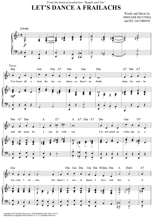 Digital Sheet Music for Let's Dance A Freilachs by Sholom Secunda, Hy Jacobson scored for Piano/Vocal/Chords; id:424215