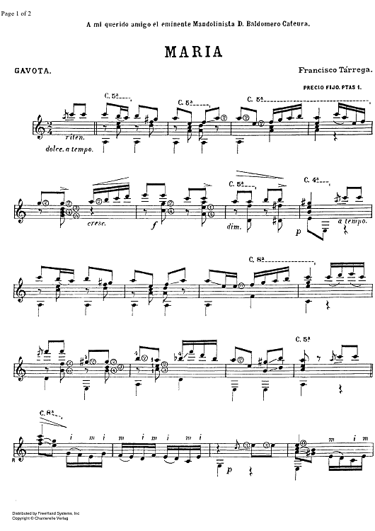 Digital Sheet Music for Maria by F. Tarrega scored for Guitar; id:327625