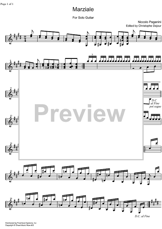 "Marziale E Major" Sheet Music by Niccolò Paganini