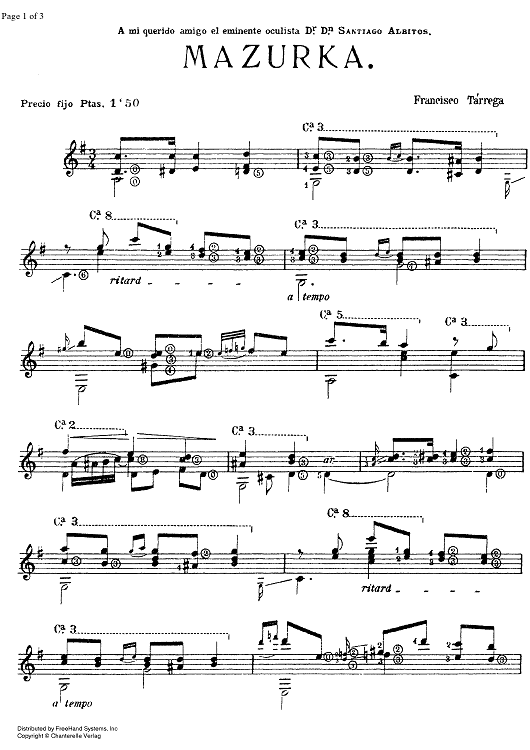 Digital Sheet Music for Mazurka by , F. Tarrega scored for Guitar; id:327626