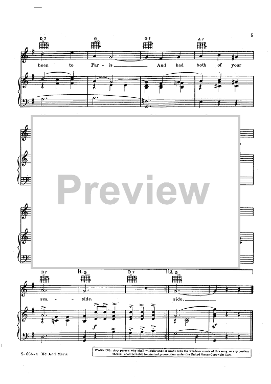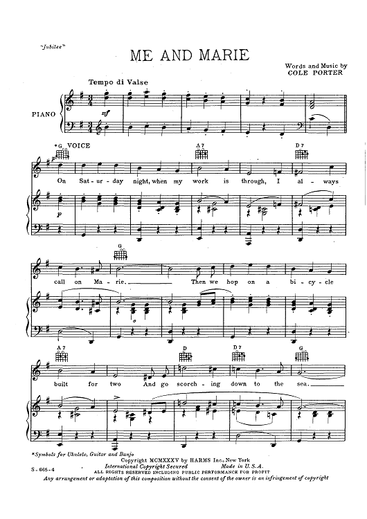 Digital Sheet Music for Me and Marie by Cole Porter scored for Piano/Vocal/Chords; id:424216