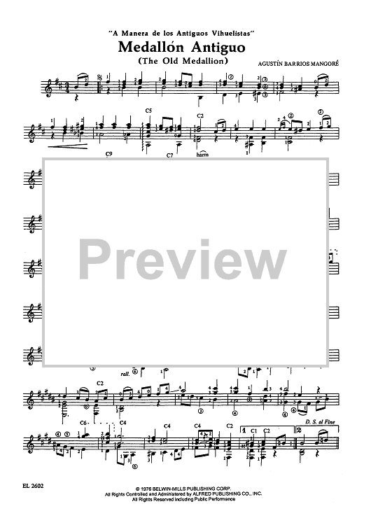 "Medallón Antiguo (The Old Medallion)" Sheet Music by Agustin Barrios Mangore