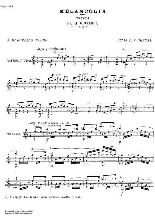 Digital Sheet Music for Melancolia by Julio Sagreras scored for Guitar; id:327115