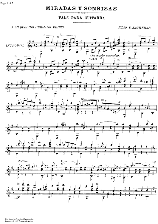 Digital Sheet Music for Miradas Y Sonrisas by Julio Sagreras scored for Guitar; id:327117