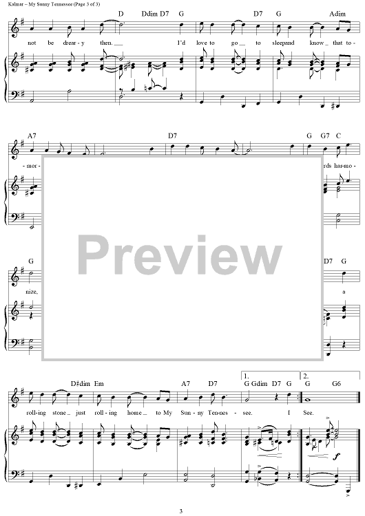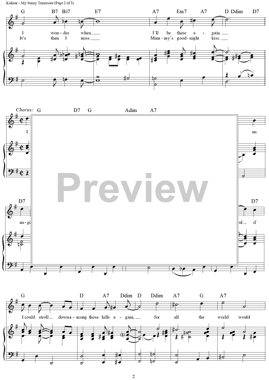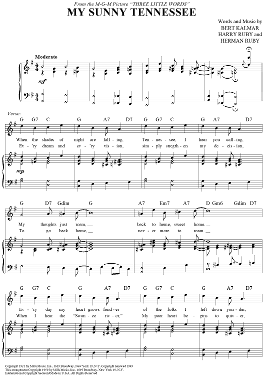 Digital Sheet Music for My Sunny Tennessee by Bert Kalmar, Harry Ruby, Herman Ruby scored for Piano/Vocal/Chords; id:424194