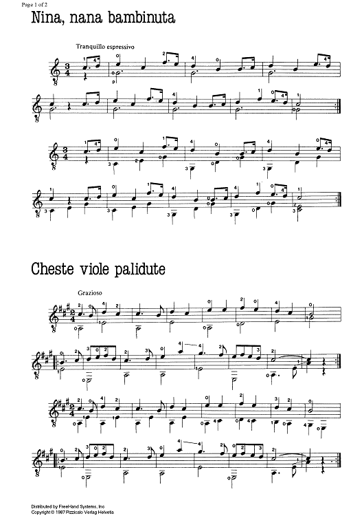 Digital Sheet Music for Nina, nana bambinuta and Cheste viole palidute by Giulio Chiandetti, Traditional scored for Guitar; id:334312