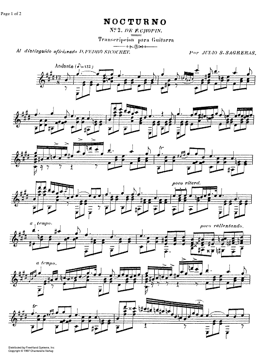 Digital Sheet Music for Nocturno by Julio Sagreras scored for Guitar; id:327119