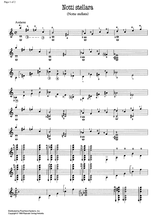 Digital Sheet Music for Notti stellara by Giuliano Manzi scored for Guitar; id:335337