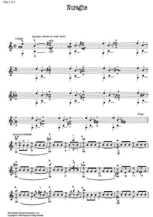 Digital Sheet Music for Nuraghe by Giuliano Manzi scored for Guitar; id:335333