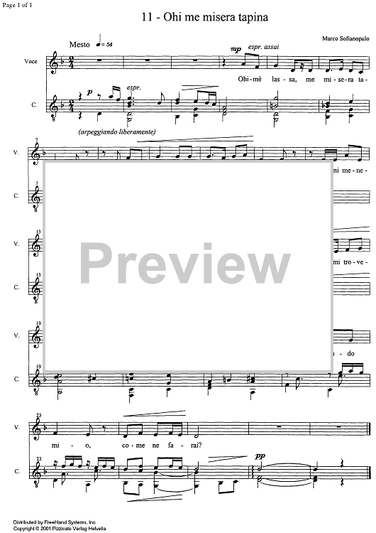 "Ohi me misera tapina" Sheet Music by Marco Sofianopulo