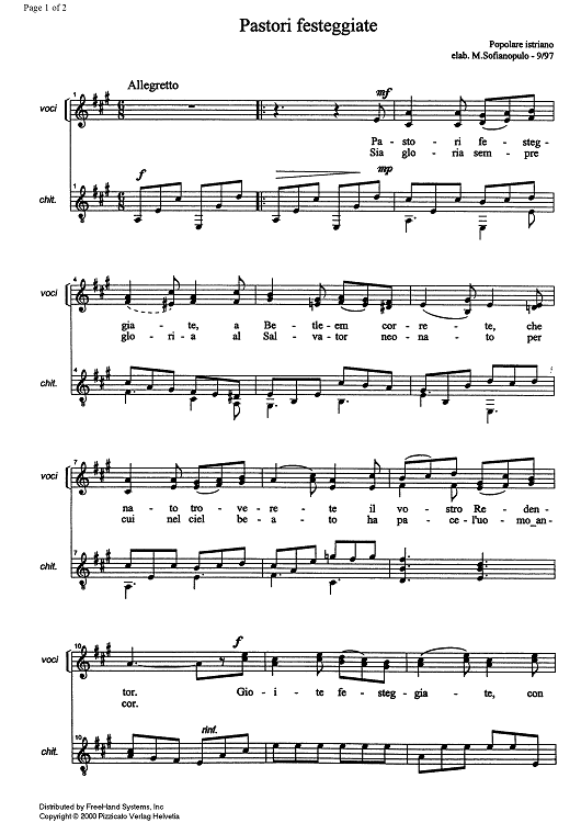 Digital Sheet Music for Pastori festeggiate by Marco Sofianopulo, Traditional scored for 2 Voices/Guitar; id:329356