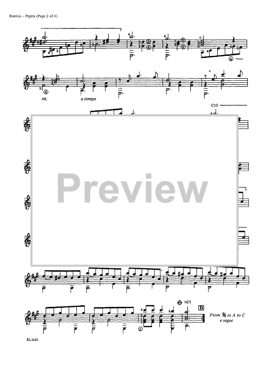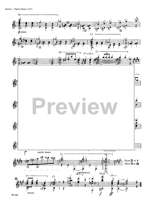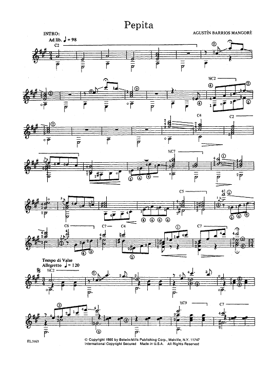 "Pepita" Sheet Music by Agustin Barrios Mangore