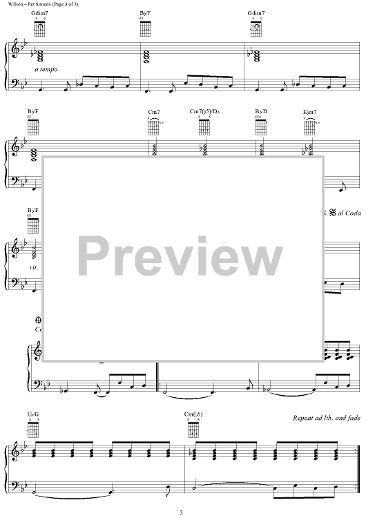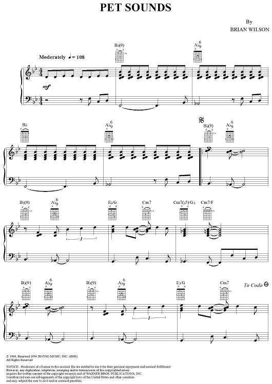Digital Sheet Music for Pet Sounds by Brian Wilson, The Beach Boys scored for Piano Solo or Guitar; id:120229