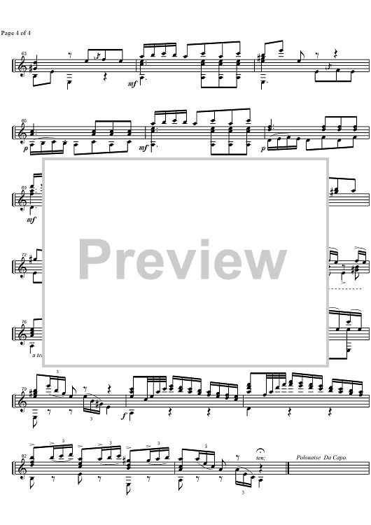 Digital Sheet Music for Polonaise Op. 2 No. 1 by Henrik Rung scored for Guitar; id:327327