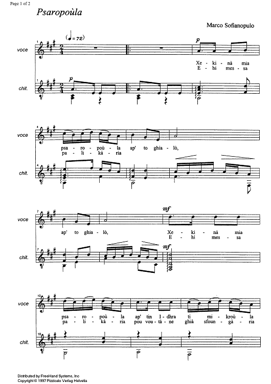 Digital Sheet Music for Psaropoùla by Marco Sofianopulo scored for Voice/Guitar; id:330523