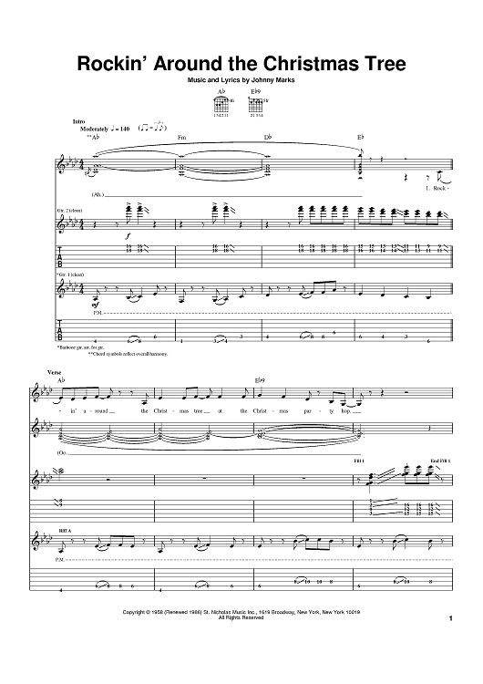 Digital Sheet Music for Rockin' Around The Christmas Tree by Johnny Marks scored for Guitar Tab; id:398505