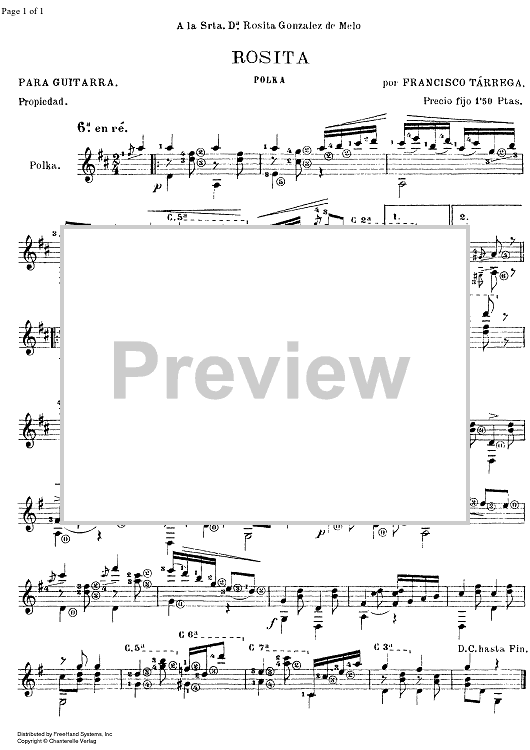 Digital Sheet Music for Rosita by F. Tarrega scored for Guitar; id:327628