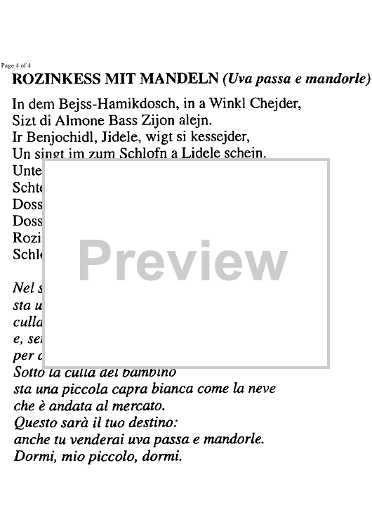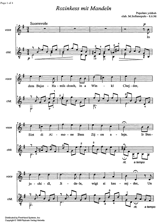 Digital Sheet Music for Rozinkess mit Mandeln by , Marco Sofianopulo, Traditional scored for Voice/Guitar; id:326540