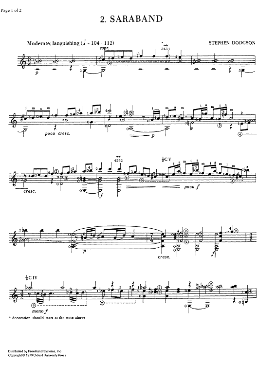 Digital Sheet Music for Saraband by , Stephen Dodgson scored for Guitar; id:349269