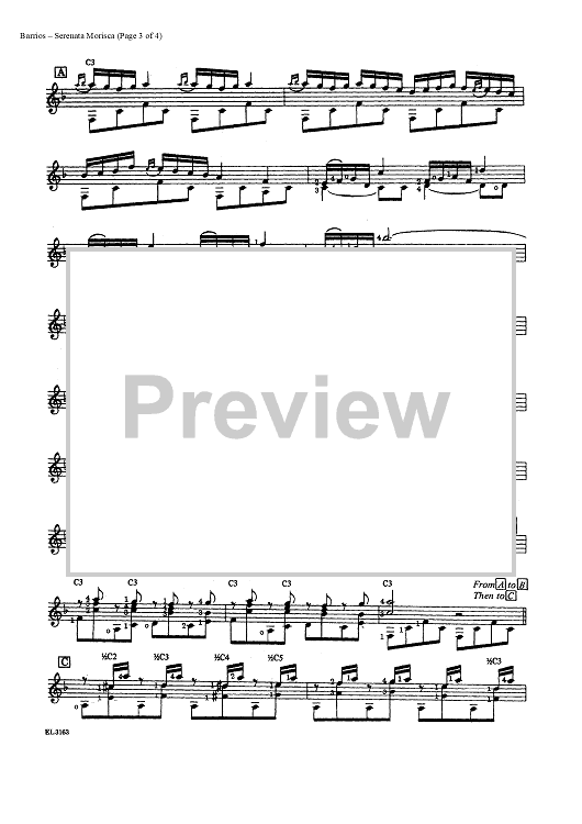 Digital Sheet Music for Serenata Morisca by Agustin Barrios Mangore scored for Guitar Solo; id:454295