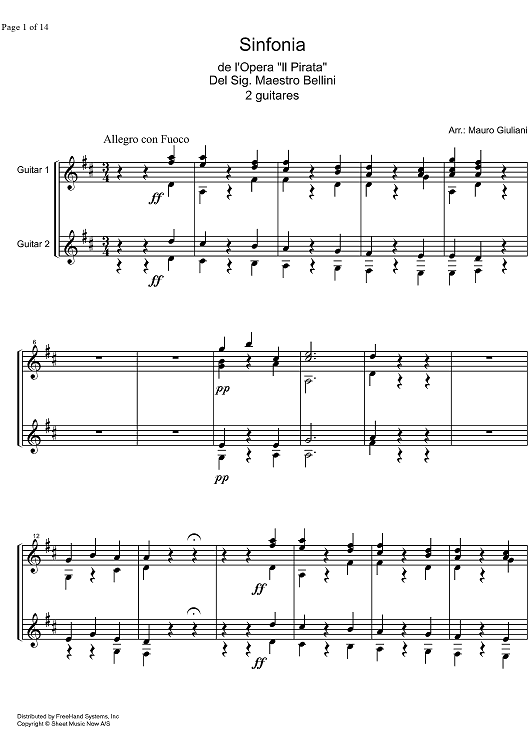 Digital Sheet Music for Sinfonia from Il Pirata by Mauro Giuliani, Vincenzo Bellini scored for Guitar Duo; id:322459