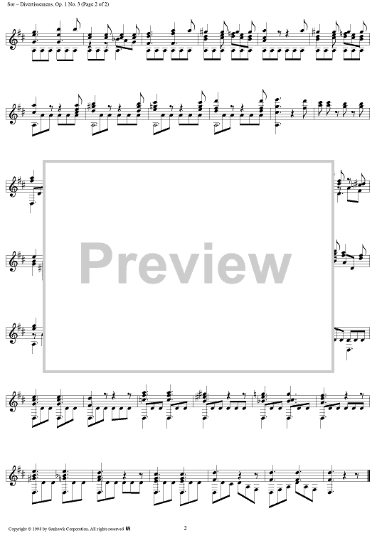 Digital Sheet Music for Six Divertissemens, Op. 1, No. 3 by Fernando Sor scored for Guitar Solo; id:95461