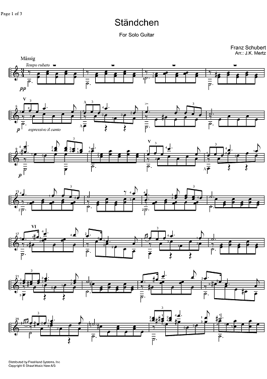 Digital Sheet Music for Ständchen D920, D921, D889 by Franz Schubert, Johann Kaspar Mertz scored for Guitar; id:322344