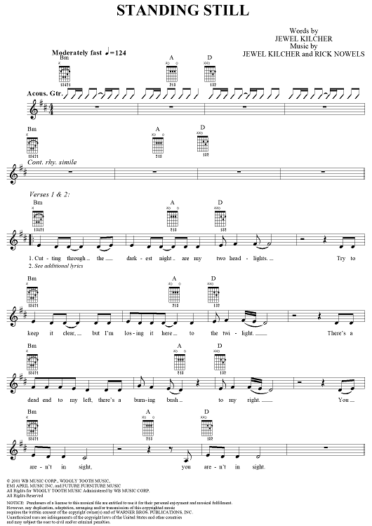 Digital Sheet Music for Standing Still by Jewel, Rick Nowels, Jewel Kilcher scored for Guitar/Vocal; id:285108