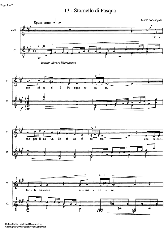 "Stornello di Pasqua" Sheet Music by Marco Sofianopulo