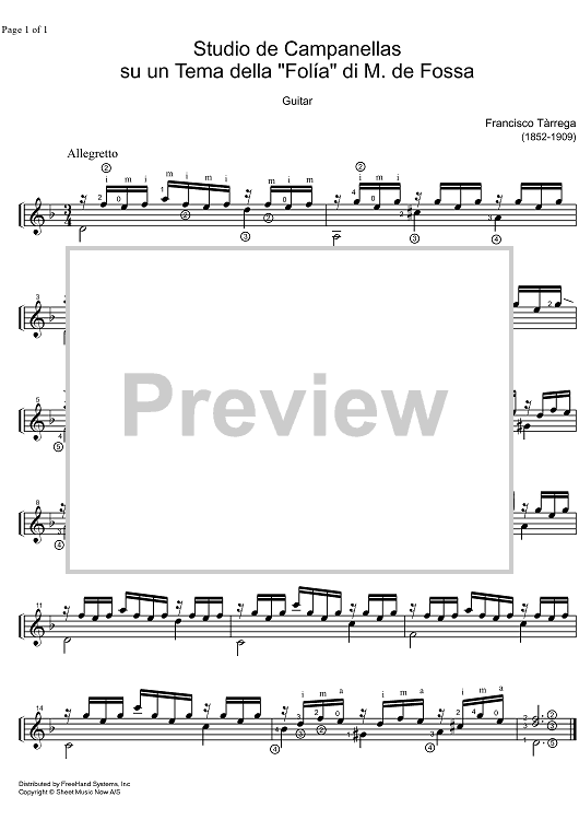 "Studio de Campanelas" Sheet Music by F. Tarrega