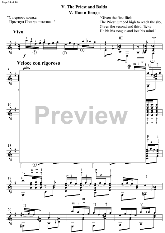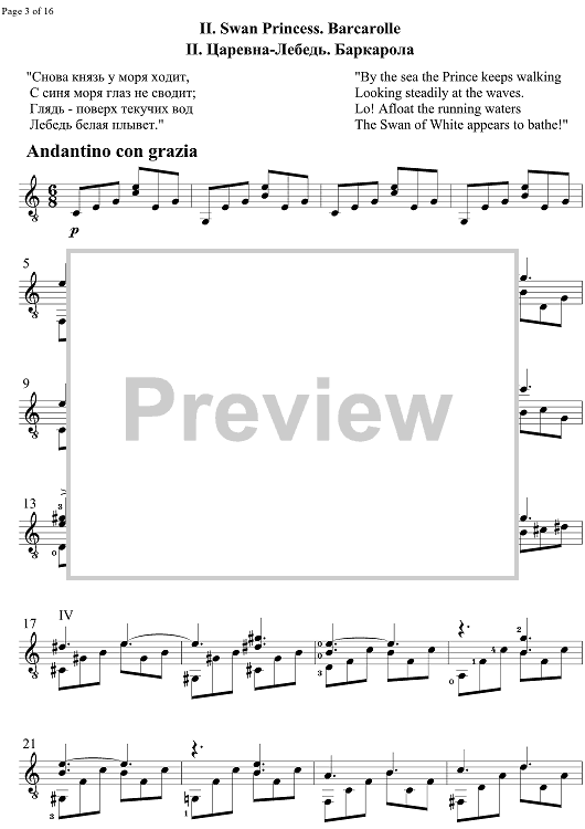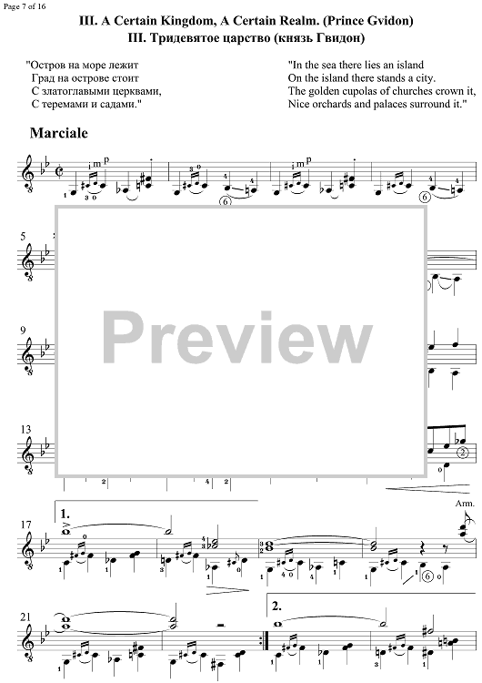 Digital Sheet Music for Suite on Personages from Alexander Pushkin's Fairy Tales by Sergei Rudnev scored for Guitar; id:321789