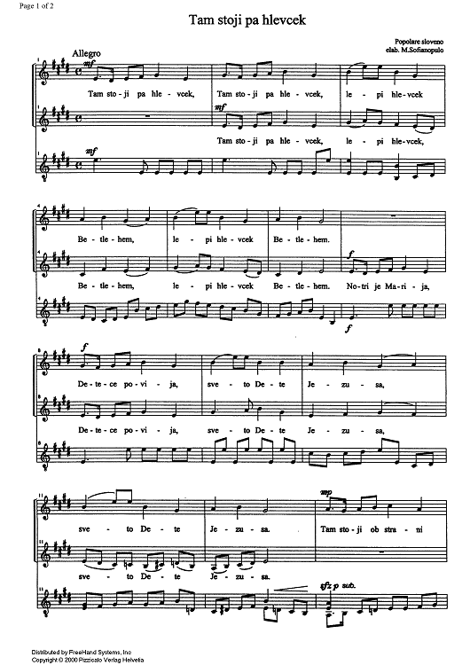 Digital Sheet Music for Tam stoji pa hlevcek by Marco Sofianopulo, Traditional scored for 2 Voices/Guitar; id:329348