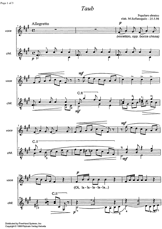 Digital Sheet Music for Taub by , Marco Sofianopulo, Traditional scored for Voice/Guitar; id:326522