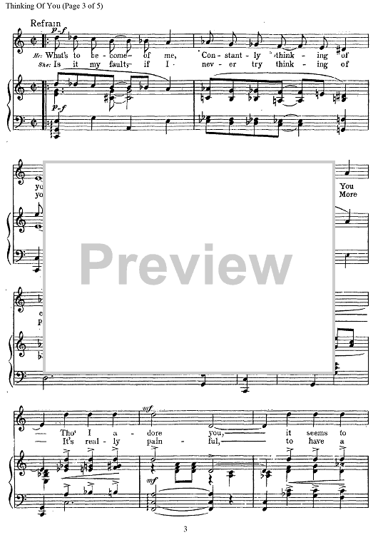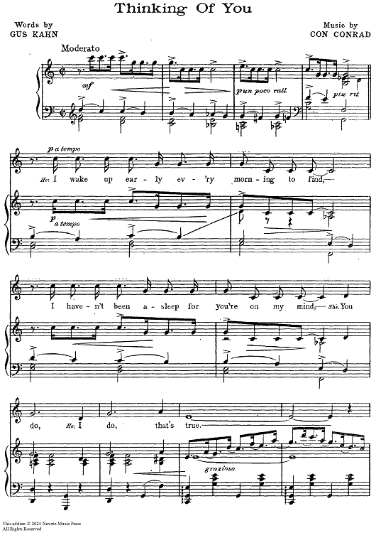 Digital Sheet Music for Thinking of You - from Kitty's Kisses by Gus Kahn, Con Conrad scored for Piano/Vocal/Chords; id:424238