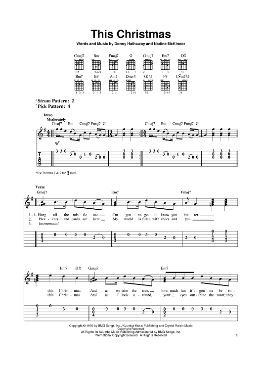 Digital Sheet Music for This Christmas by Nadine McKinnor, Donny Hathaway, Usher, Diana Ross scored for Easy Guitar Tab; id:375029