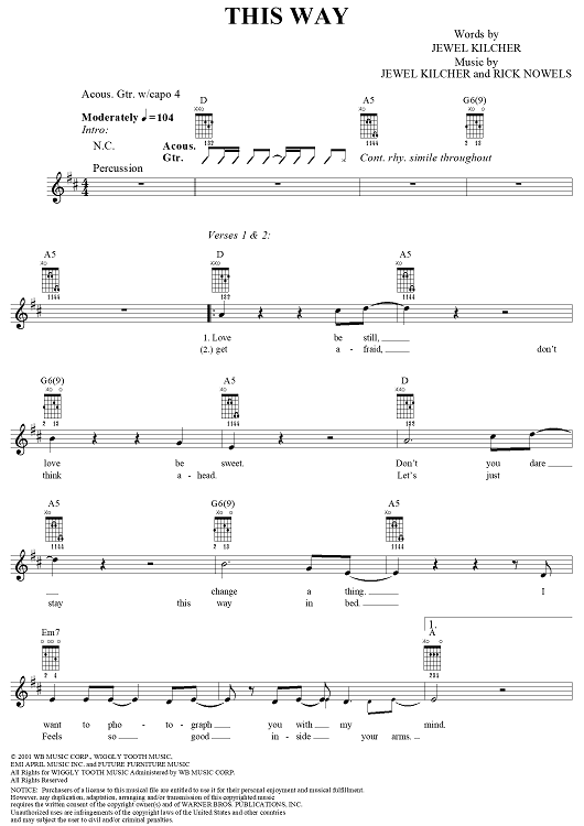 Digital Sheet Music for This Way by Jewel, Rick Nowels, Jewel Kilcher scored for Guitar/Vocal; id:288391