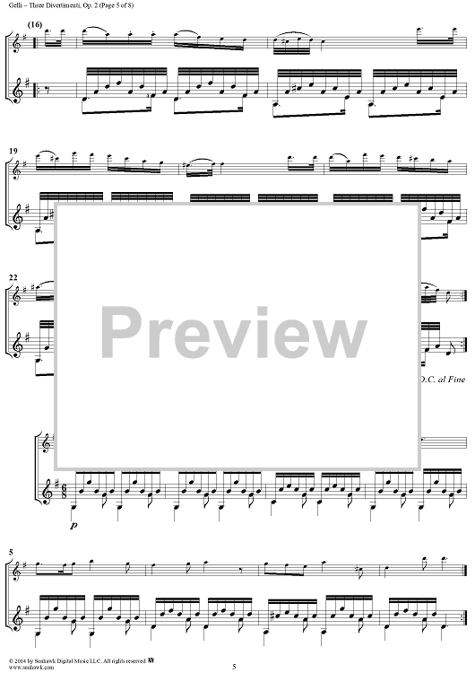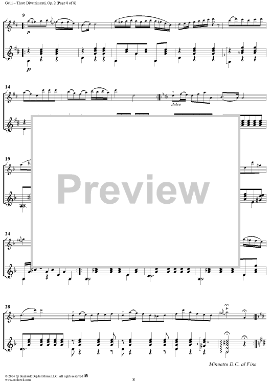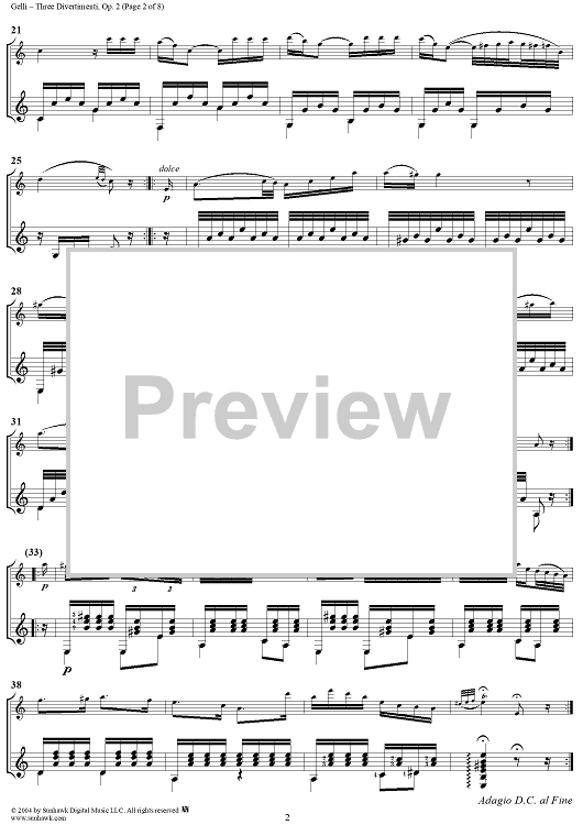 Digital Sheet Music for Three Divertimenti, Op. 2 - Full Score by Vincenzo Gelli scored for Violin and Guitar; id:303797