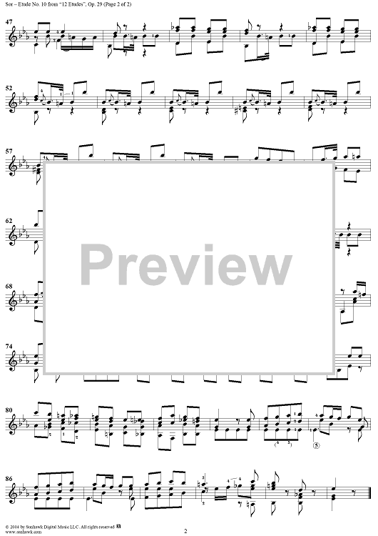 Digital Sheet Music for Twelve Etudes, Op. 29, No. 10: Andantino by Fernando Sor scored for Guitar Solo; id:297879