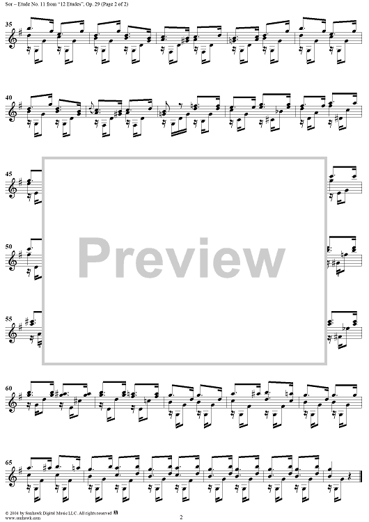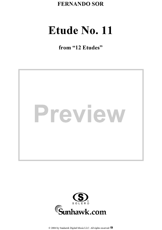 Digital Sheet Music for Twelve Etudes, Op. 29, No. 11 by Fernando Sor scored for Guitar Solo; id:297880