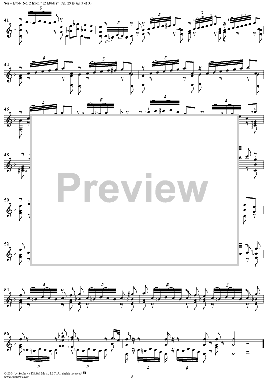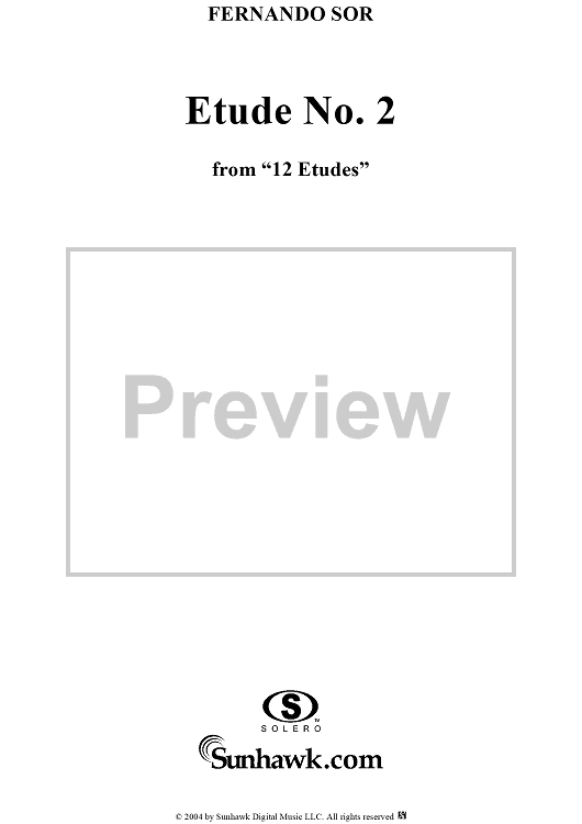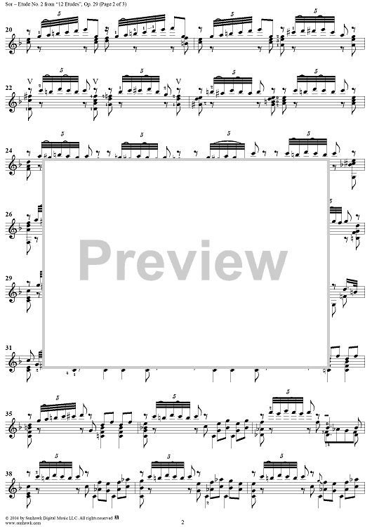 Digital Sheet Music for Twelve Etudes, Op. 29, No. 2: Andante moderato by Fernando Sor scored for Guitar Solo; id:297872