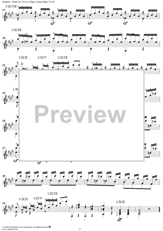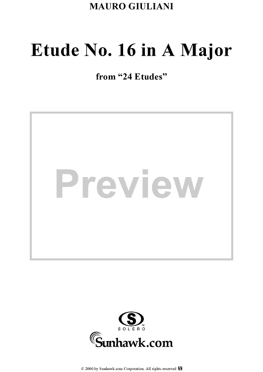 Digital Sheet Music for Twenty-Four Etudes, op. 48, no. 16 in A major by Mauro Giuliani scored for Guitar Solo; id:197228